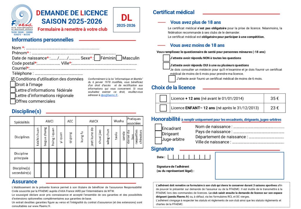 Essayez le tai chi avec 3 cours d’essai gratuits. Puis 135€ par an, licence incluse.